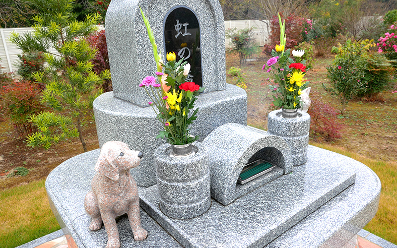 そのようなペットを愛する方や、ペットと共に眠りたいという方々の意向に応え、霊園内にペット永代供養「虹の橋」を新設しました。